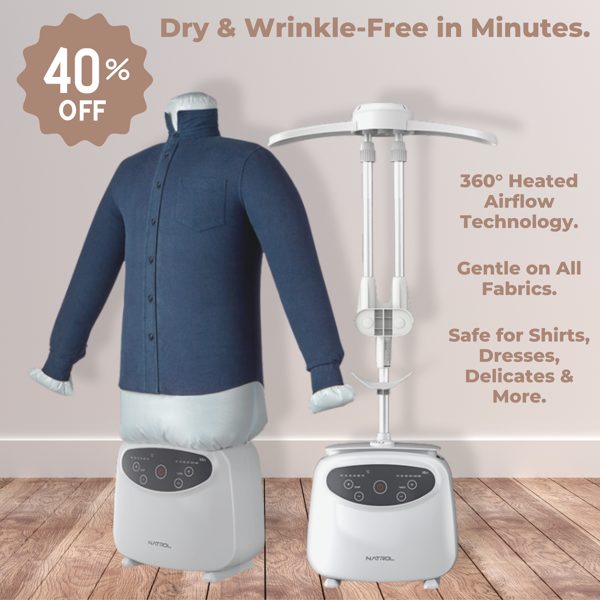 The Ironova AeroDry™ uses 360° heated air circulation to dry and de-wrinkle your clothes in one simple step. Just hang, zip, and let warm air smooth creases naturally - no ironing, no hassle, no bulky machines. Fast, compact, and perfect for homes, travel, and everyday use.